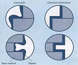 La electrodeposición de níquel es un proceso de deposición de níquel sobre una pieza metálica. Las piezas a tratar deben estar limpias y libres de suciedad, corrosión y defectos, antes de poder comenzar.[2] Para limpiar y proteger la pieza durante el proceso de recubrimiento se puede utilizar una combinación de tratamiento térmico, limpieza, enmascaramiento, decapado y grabado.[1] Una vez preparada la pieza se sumerge en una solución de electrolito y se utiliza como cátodo. El ánodo de níquel se disuelve en el electrólito en forma de iones de níquel. Los iones viajan a través de la solución y se depositan en el cátodo.[3]