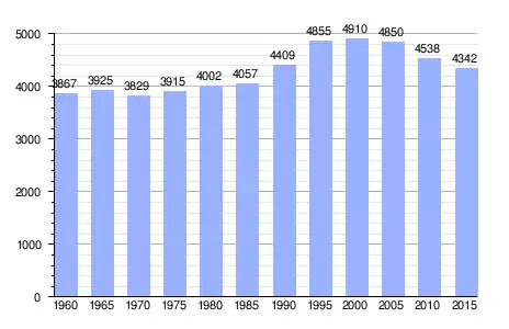 | Gráfica de evolución demográfica de Nishikatsura entre 1960 y 2015 |