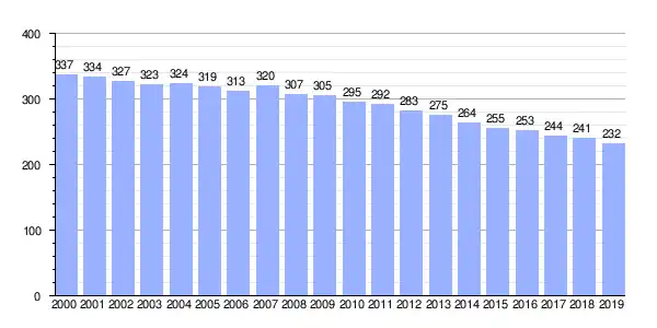 | Gráfica de evolución demográfica de Niveiro entre 2000 y 2019 |