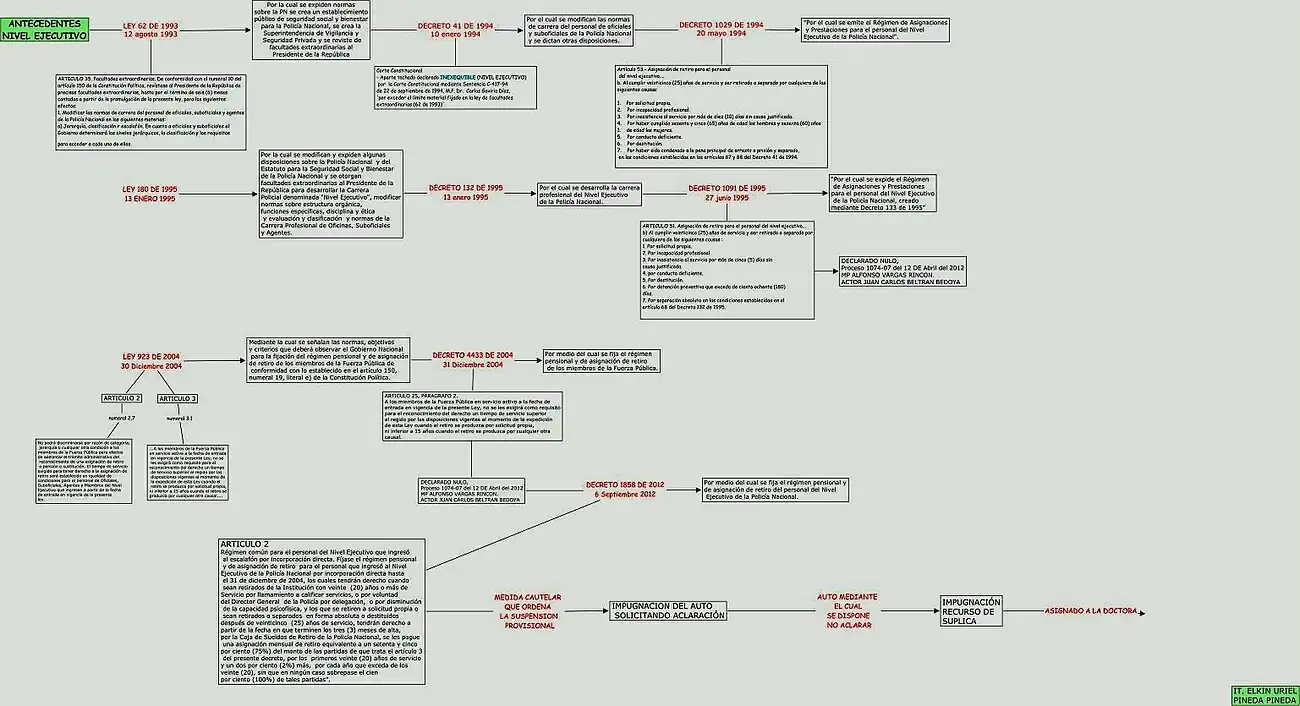 Con la Ley 180 de 1995 (enero 13),[4] el Congreso de Colombia, otorgó facultades extraordinarias al Presidente de la época Ernesto Samper Pizano, para desarrollar la Carrera Policial denominada "Nivel Ejecutivo"; el Decreto 132 de 1995 (enero 13), desarrolló la carrera del Nivel Ejecutivo, que estableció los grados, y los tiempos mínimos en los grados para el ascenso;[5] este decreto fue modificado por el Decreto 1791 de 2000,[6] mediante facultades otorgadas por el Congreso en la Ley 578 de 2000[7] al señor presidente Andrés Pastrana Arango.