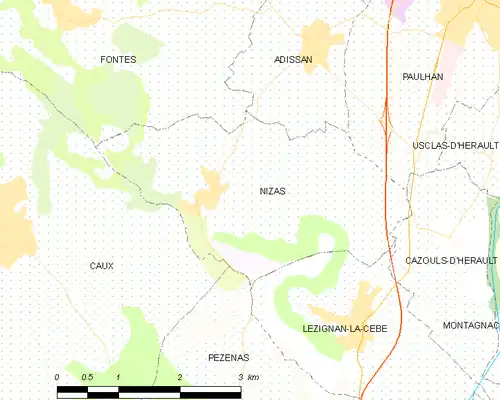 ![]() Nizas Localización de Nizas en Francia | ||