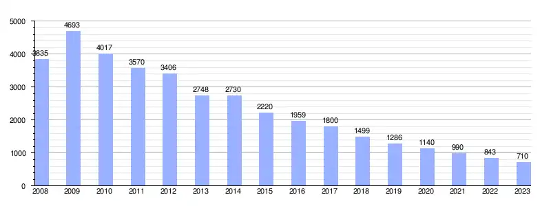 | Gráfica de evolución de la deuda viva del Ayuntamiento entre 2008 y 2023 |