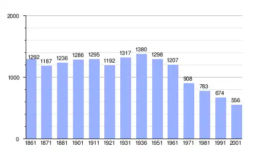 | Gráfica de evolución demográfica de Nocara entre 1861 y 2001 |