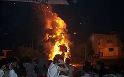 - Mientras el monigote queda quemado algunas familias acostumbran a saltar sobre la hoguera para traer la suerte en el año venidero.