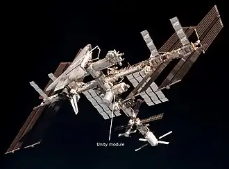 5. «NASA Facts: Unity Connecting Module: cornerstone for a Home in Orbit» (en inglés). NASA. enero de 1999. Archivado desde el original el 17 de marzo de 2009. Consultado el 28 de agosto de 2008.   Este artículo incorpora texto de esta fuente, la cual está en el dominio público.