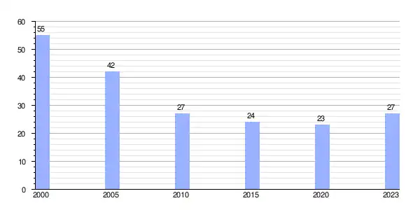 | Gráfica de evolución demográfica de Nogueira (parroquia) entre 2000 y 2023 |