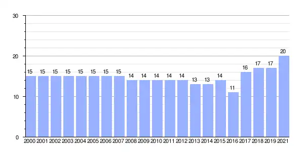 | Gráfica de evolución demográfica de Nogueira (aldea) entre 2000 y 2021 |