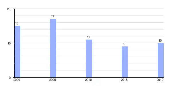 | Gráfica de evolución demográfica de Nogueiras entre 2000 y 2019 |