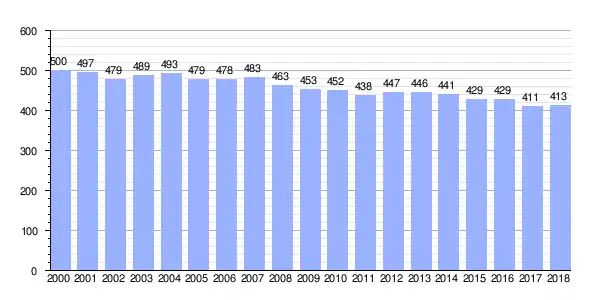 | Gráfica de evolución demográfica de Noicela (parroquia) entre 2000 y 2018 |