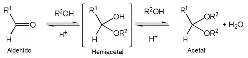 | Hidrato de carbonilo (Diol geminal ó n,n-diol) | ![]() |