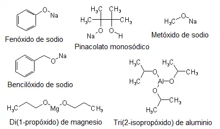 Un éter es un grupo funcional que consiste en un átomo de oxígeno conectado a dos sustituyentes carbonados. Los enoles O- sustituidos se denominan viniléteres o enolatos. Los O-inoles sustituidos se denominan inolatos o alquiniléteres. Los fenoles O-sustituidos se denominan como ariléteres.[37]