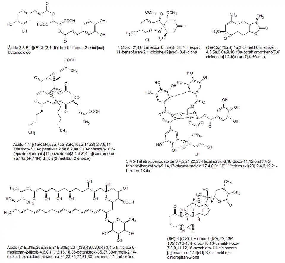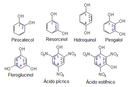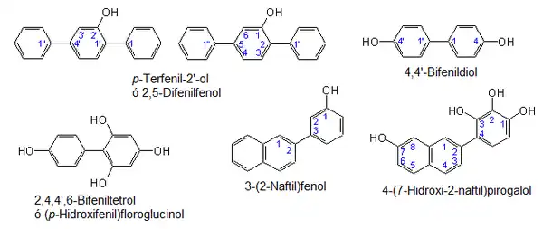 Los siguientes nombres triviales de polifenoles y nitrofenoles se conservan:
