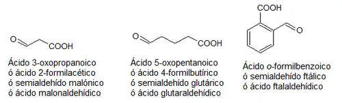 | Ácido malónico | Ácido propanodioico | HOOC-CH2-COOH |