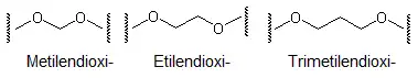 - (b) En agrupaciones de unidades moleculares idénticas, se utiliza el prefijo "dioxi-" para denominar al grupo bivalente "-O-O-" y se citan los localizadores de acuerdo a la nomenclatura multiplicativa: