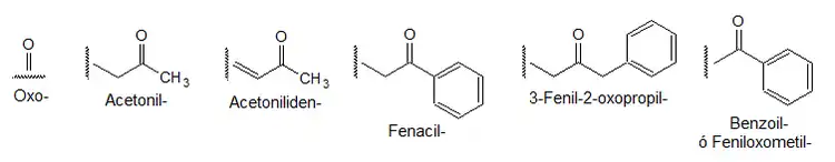 Un reemplazo de los - OH con grupos alquilo genera a los ácidos carboxílicos. Un segundo reemplazo por un grupo alquilo genera el grupo cetona.