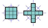 - 2 nonominós tienen cuatro ejes de simetría especular, alineados con las líneas de la cuadrícula y las diagonales, y simetría rotacional de orden 4. Su grupo de simetría, el grupo diédrico de orden 4, tiene ocho elementos.