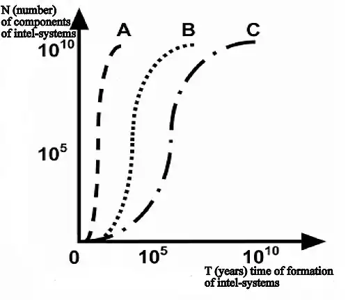 La ley del número crítico de componentes intelectuales Los sistemas intelectuales pueden formarse cuando se alcanzan las cantidades críticas de sus componentes intelectuales y las comunicaciones entre ellos. Cuando el número de componentes intelectuales llega a n ≥ 1 mil millones, puede encontrarse el fenómeno de noorrevolución: transición del desarrollo cuantitativo del sistema de información a un sistema intelectual autónomo cualitativamente nuevo.