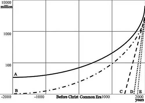 Hace 125 años se ha abierto la neurona, comenzó a desarrollarse doctrina de la neurona Santiago Ramón y Cajal, que han recibido el reconocimiento universal.[22] De acuerdo con los datos modernos, en el cerebro H.sapiens en el proceso de ontogénesis y filogénesis de un adulto humano hay 86 miles de millones de neuronas.[23] - Noogénesis (según la hipótesis de Vladímir Vernadski "aspiración a la noosfera") del desarrollo humano. En el proceso de evolución, el número de hombres aumenta desde dos primogénitos a unos 70 millones de personas (siglo XX a. C.), unos 300 millones (a comienzos del siglo I d. C.), alrededor de mil millones (a los 30 años del siglo XX d. C.), 6 mil millones a fines del siglo XX. De acuerdo con los modelos matemáticos de Serguéi Kapitsa, la cantidad de la humanidad puede alcanzar 12.5-14 mil millones en los siglos XXI- XXII.[5]