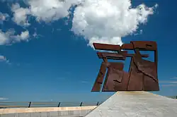 La escultura tiene cuatro metros de alto por cinco de ancho.[2] Está hecha de Acero corten y presenta una estructura tridimensional, con superposiciones y recortes que le confieren su personalidad. Al estar el acero perforado desde el origen, su autor trataba de hacer que el propio viento que incide en la zona terminase de modelar la escultura. Se asienta sobre un pedestal que la hace aún más visible.[3]
