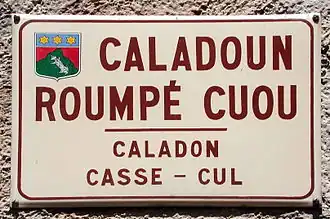 Provenzal Tóuti li persouno naisson libro e egalo en dignita e en dre. Soun doutado de resoun e de counsciènci e li fau agi entre éli em' un esperit de freiresso. Provenzal nizardo Gascón (grafía febusiana) |