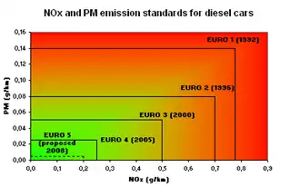 | Euro 5 | Septiembre de 2010 | 1.0 | 0.075 | - | 0.06 | 0.005 |