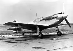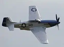 El North American P-51 Mustang fue un caza y caza de escolta monomotor estadounidense de largo alcance, utilizado por las Fuerzas Aéreas del Ejército de los Estados Unidos (USAAF) durante la Segunda Guerra Mundial y la Guerra de Corea, entre otros conflictos. El Mustang fue diseñado en 1940 por North American Aviation (NAA) en respuesta a un requerimiento de la Comisión de Adquisiciones del Reino Unido. La Comisión de Adquisiciones se acercó a North American Aviation para construir cazas Curtiss P-40 bajo licencia para la Real Fuerza Aérea (RAF). En lugar de construir un diseño antiguo de otra compañía, North American Aviation propuso el diseño y la producción de un caza más moderno. El prototipo NA-73X se puso en marcha el 9 de septiembre de 1940, 102 días después de la firma del contrato, y voló por primera vez el 26 de octubre.[2][3]