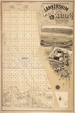 En octubre de 1887, J.B. Lankershim y otros ocho desarrolladores organizaron Lankershim Ranch Land and Water Company, comprando 12 000 acres (49 km²) al norte del Cahuenga Pass de Lankershim Farming and Milling Company. Lankershim estableció un poblado que los residentes llamaron Toluca a lo largo de la antigua carretera desde el paso de Cahuenga hasta San Fernando. El 1 de abril de 1888, ofrecieron a la venta pequeñas granjas listas para usar, ya plantadas con árboles frutales y nueces caducifolios de raíces profundas, en su mayoría melocotones, peras, albaricoques y nueces, que podrían sobrevivir a los veranos sin lluvia del Valle confiando en el nivel freático alto a lo largo del Tujunga Wash en lugar del riego superficial.[1]