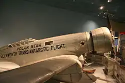 El 23 de noviembre de 1935, Ellsworth y el piloto canadiense Herbert Hollick-Kenyon intentaron efectuar el primer vuelo transantártico desde la isla Dundee, en el mar de Weddell hasta Little America. La tripulación hizo cuatro escalas durante su viaje, siendo las primeras personas en visitar la Antártida Occidental. Durante una escala, una nevasca cubrió completamente el fuselaje con nieve y tardaron un día en retirarla. El 5 de diciembre, después de viajar más de 3865 km (2400 millas), el avión se quedó sin combustible a sólo 40 km (25 millas) de la meta. A la intrépida tripulación le tomó seis días recorrer el resto del trayecto y se quedaron en el campamento abandonado de Richard Evelyn Byrd, hasta que fueron encontrados por el navío de investigación Discovery II, el 15 de enero de 1936. El Polar Star fue posteriormente recuperado y donado al Museo Nacional del Aire y el Espacio del Instituto Smithsoniano, donde está expuesto actualmente.[3]
