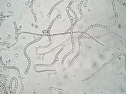 Nostoc es un género de cianobacterias de agua dulce o terrestres, perteneciente a la familia Nostocaceae, del orden Nostocales, que forma colonias esféricas y compuestas de filamentos (tricomas).