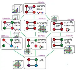 Si los nodos están indexados, la mitad de los subgrupos se pueden etiquetar con nuevos espejos como compuestos. Al igual que ![]()
