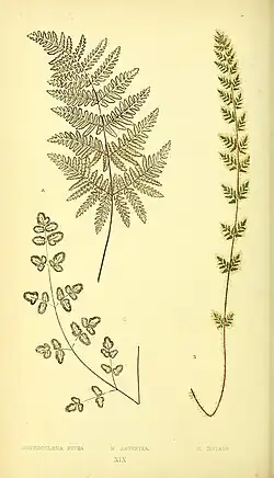 Aleuritopteris preslii Fourn.; Aleuritopteris pulveracea (Presl) Fée; Aleuritopteris sulfurea (Cav.) Fée; Allosorus pulveraceus Presl; Allosorus sulphureus (Cav.) Presl; Cheilanthes borsigiana Rchb. fil. & Warsz.; Cheilanthes farinosa var. sulphurea (Cav.) T.Moore; Cheilanthes furfuracea Presl ex Koch; Cheilanthes lepida Phil.; Cheilanthes monosticha Mett.; Cheilanthes sulphurea (Cav.) Mickel & Beitel; Chrysochosma borsigianum (Rchb. fil. & Warsz.) Kümm.; Chrysochosma pulveraceum (Presl) Kümm.; Chrysochosma sulphurea (Cav.) Kümmerle; Notholaena argentea Lowe; Notholaena cretacea Liebm.; Notholaena lepida (Phil.) Looser; Notholaena monosticha Moore; Notholaena pulveracea (Presl) Kze.; Pteris sulfurea Cav. | ||