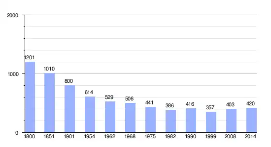 Los datos demográficos contemplados en este gráfico de la comuna de Notre-Dame-de-Courson[4] se han cogido de 1800 a 1999 de la página francesa EHESS/Cassini, y los demás datos de la página del INSEE.[5]