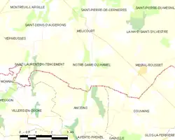 - Situación de Notre-Dame-du-Hamel en un mapa de Francia y de comunas limítrofes Archivado el 3 de enero de 2009 en Wayback Machine. (en francés)
