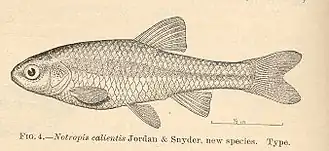 - Esta obra contiene una traducción derivada de «Notropis calientis» de Wikipedia en catalán, publicada por sus editores bajo la Licencia de documentación libre de GNU y la Licencia Creative Commons Atribución-CompartirIgual 4.0 Internacional.