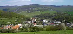 Se encuentra ubicado al oeste de la región, cerca del río Váh (cuenca hidrográfica del Danubio) y de la frontera con la región de Trnava y la República Checa.[2]