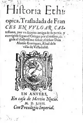 La Historia etiópica de Heliodoro de Émesa fue hallada en 1526 entre las ruinas de la biblioteca de Matías Corvino, rey de Hungría.[2] A partir de este códice se realizó la edición princeps en 1534 y no tardó en ser traducido al latín y otras lenguas europeas. En 1554 apareció en Amberes la primera versión española y en 1587 la exitosa versión de Fernando de Mena que fue editada en tres ocasiones durante el siglo XVII.