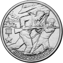 El 7 de mayo de 1966 la ciudad fue condecorada con la Orden de la Guerra Patria de 1.ª clase por la firmeza, el valor y el heroísmo, manifestado por los defensores de Novorosíisk durante la Gran Guerra Patria. El 14 de septiembre de 1973 en la conmemoración de los treinta años de la derrota del ejército alemán en la defensa del Cáucaso Norte se le otorgó a Novorosíisk el título honorífico de Ciudad Heroica, la Orden de Lenin y la Estrella de Oro.