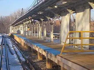 La estación Noyes cuenta con 1 plataforma central y 2 vías.