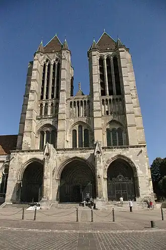 - Catedral de Notre-Dame: la primitiva catedral románica, en la que Carlomagno y Hugo Capeto fueron consagrados, fue destruïda por un incendio en 1131. De 1145 a 1235 se construyó una de las primeras grandes iglesias góticas francesas (gótico primitivo).