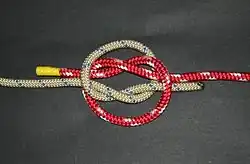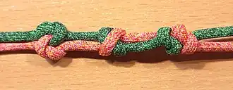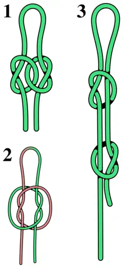 ![]() Algunos nudos a menudo se denominan nudos de los verdaderos amantes. El del medio también se conoce como nudo de Matthew Walker, el de la derecha como nudo pescador. | ||