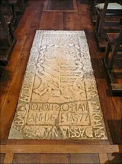 En el segundo y tercer tramo de la nave se conservan cuatro laudas sepulcrales de alabastro y madera, empotradas en el suelo de la nave, con inscripciones de enterramientos de personajes notables de la historia de Gazólaz.[45] La primera lauda —situada junto al lado del evangelio— es de 1717. Tiene un escudo labrado y la inscripción «Esta sepultura es de Juan Antonio Ochoa de Olza y María Josepha de Erice y sus descendientes». La lauda central es de mediados del siglo XVI y pertenece a Joanes de Asiáin, abad de Gazólaz y arcipreste de la Cuenca, y su esposa Ioanae de Gazólaz. La tercera lauda está situada junto al lado de la epístola y posee un rótulo junto al escudo que dice «Esta sepultura es de López de Erice y María Juana de Gazólaz su muger i descendientes». La cuarta sepultura está situada en el centro, junto a la verja que delimita el ábside. Es de 1817 y está realizada en madera.