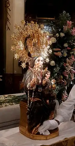 La imagen gótica fue destruida en la guerra civil cuando fue arrasada la capilla en la que se encontraba. Concretamente, fue quemada a las puertas de la Capilla de la Comunión de la iglesia el día de su festividad (08/09/1936). La actual imagen es una réplica del año 1944 realizada por Felip Panach Ballester. Antes de ésta hubo otra realizada en 1939, que actualmente se encuentra en la Capilla de la Troballa.[1]