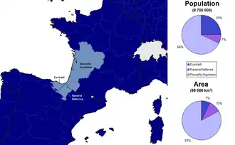 La eurorregión está compuesta por las comunidades autónomas españolas de País Vasco y Navarra y la región francesa de Nueva Aquitania.