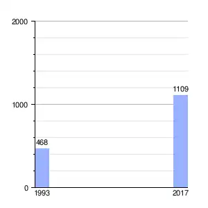 | Gráfica de evolución demográfica de Nuevo Pedregal entre 1993 y 2017 |