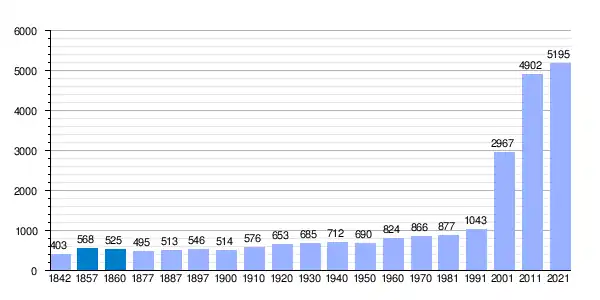 | Gráfica de evolución demográfica de Numancia de la Sagra[15] entre 1842 y 2021 |