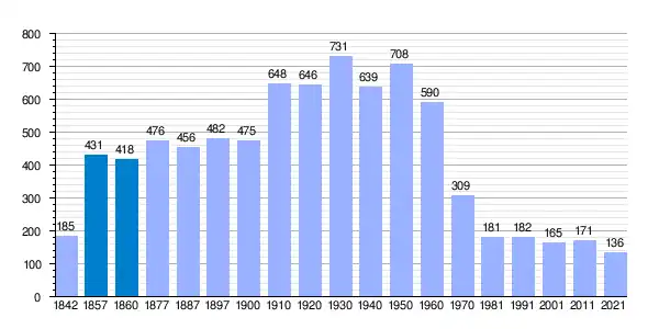 Las variaciones de la población en torno a los 600 habitantes se mantuvo durante la primera mitad del siglo XX. A partir de los años 1960 se produjo un significativo descenso.