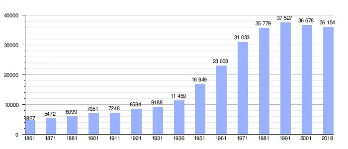 | Gráfica de evolución demográfica de Nuoro entre 1861 y 2018 |