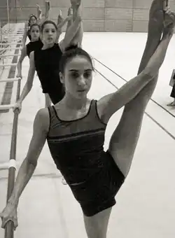 - ↑ Como «competición internacional oficial» se entienden aquellas competiciones internacionales organizadas por la Federación Internacional de Gimnasia (FIG), por sus organismos continentales (como la Unión Europea de Gimnasia) o por el Comité Olímpico Internacional (junto a la FIG). Se incluirían por tanto Juegos Olímpicos, Preolímpicos, Campeonatos Mundiales, Campeonatos Europeos y pruebas de la Copa del Mundo, así como competiciones extintas tales como la Final de la Copa del Mundo, la Final de la Copa de Europa, el Campeonato Europeo Júnior (ahora integrado dentro del Campeonato Europeo), el Euromasters, y el Campeonato Europeo por Equipos (sucesor del Euromasters). No se incluyen bajo este término competiciones únicamente patrocinadas por dichos organismos, como los Juegos Mediterráneos o los Juegos Mundiales en el caso del COI, o el Grand Prix en el caso de la UEG.