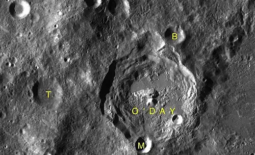 Por convención estos elementos son identificados en los mapas lunares poniendo la letra en el lado del punto medio del cráter que está más cercano a O'Day.