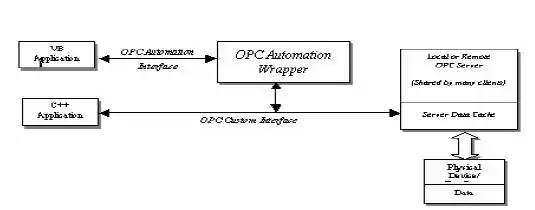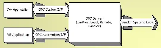 Una aplicación cliente OPC se comunica a un servidor OPC a través de un cliente OPC específico por medio de una interfaz de automatización. El servidor OPC lleva a cabo la interfaz cliente, y opcionalmente lleva a cabo la interfaz de automatización